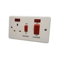 Electrical 45amp Cooker Control Unit with 13amp Single Power Socket with Power Indicator – White.
