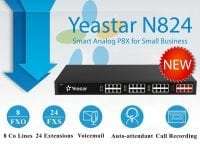 Yeastar N824 Smart Analog Phone System is an easy-to-use and affordable phone system designed to deliver advanced communication features of a large system to small offices. Yeastar N824 maximizes cost-effectiveness with 8 CO lines, 24 analog extensions, 8 SIP extensions, 4 SIP trunks and the ability to handle calls with your mobile phone.